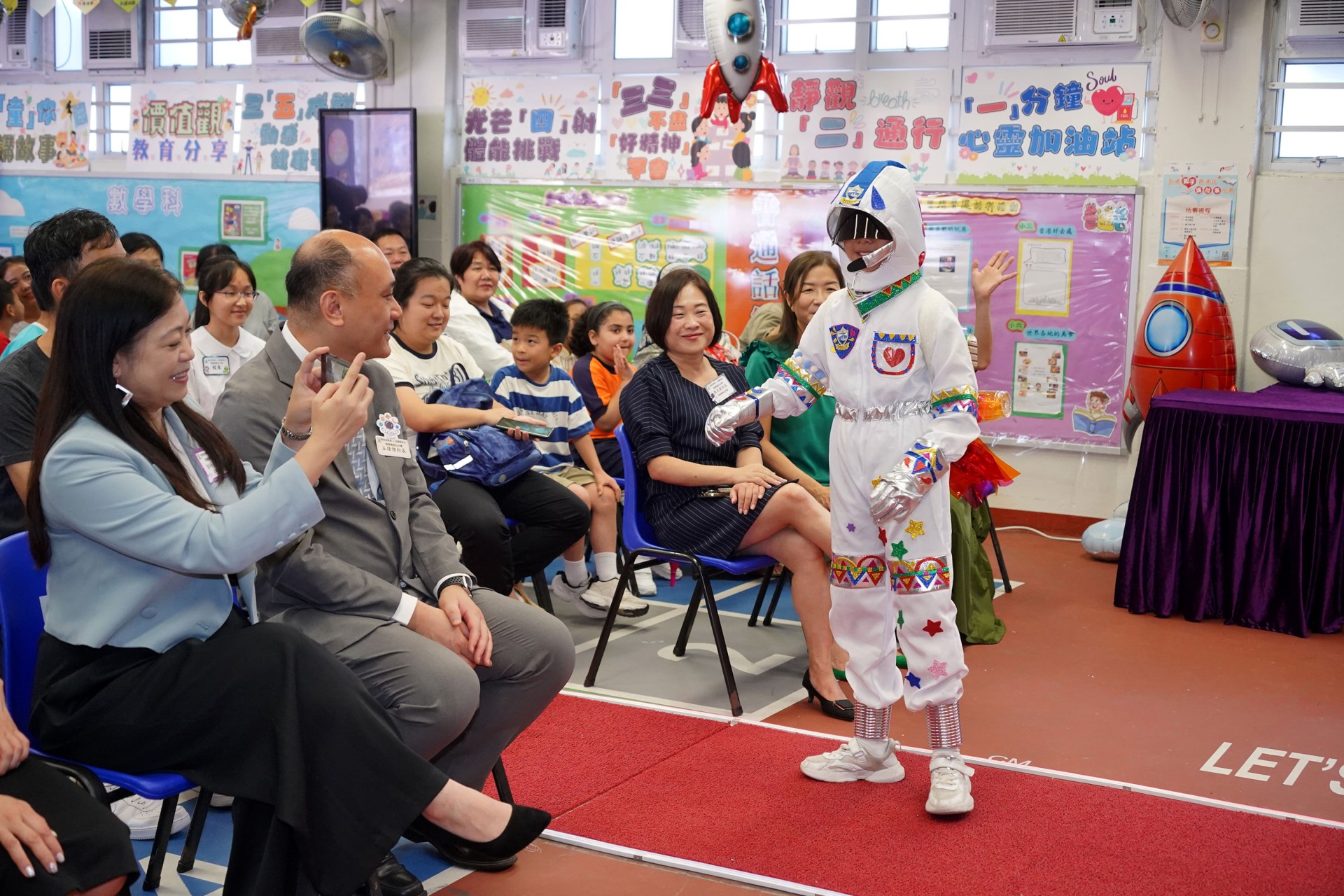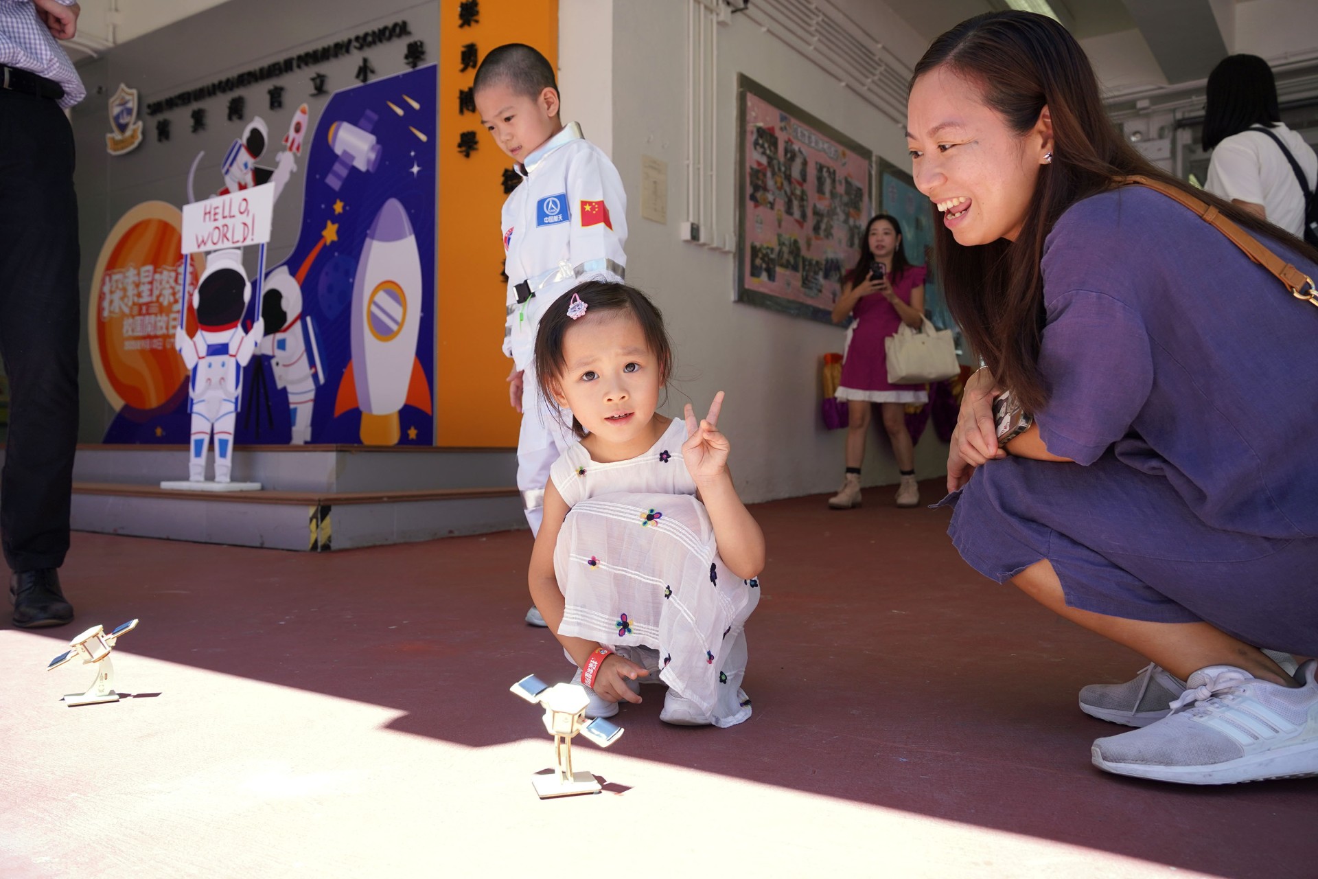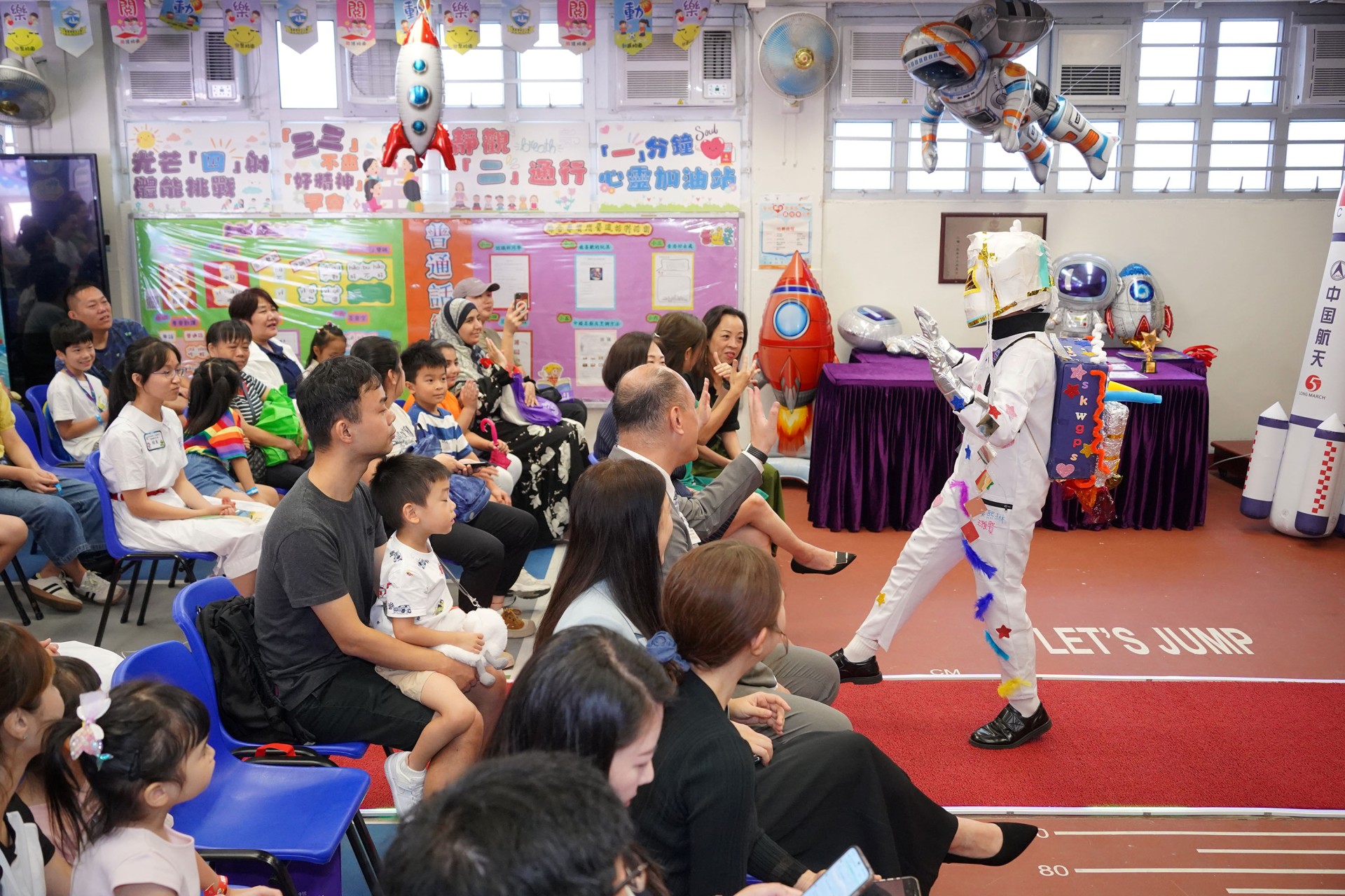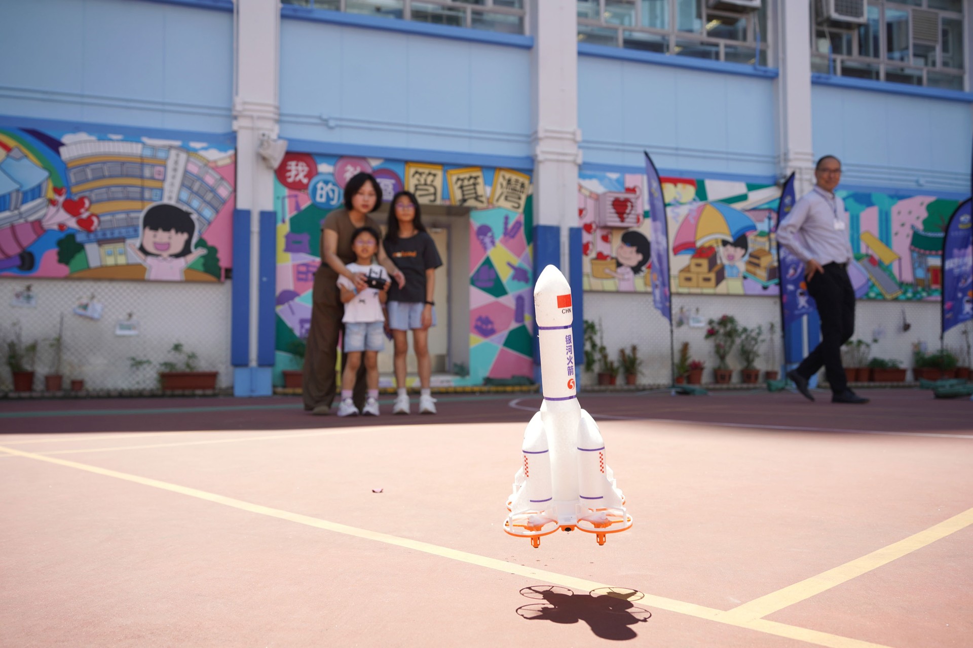 當天的航天體驗活動非常多元化,有動手製作的太陽能人造衞生及太陽能月球車工作坊;天宮空間站、北斗衞星、長征二號及五號火箭等的航天展覽;無人機火箭體驗活動;以天宮空間站實境設計,讓學生可以進行試驗,藉以理解無重狀態的VR太空艙體驗活動、航天服體驗等活動;此外,本校亦安排各科組以相同主題設計活動,例如數學科以不同星球的蘋果重量讓學生誘發學生對引力的興趣;又以太空故事作背景,讓學生以AI生成故事書等;將視藝元素結合STEM元素,製作動感火箭;以mbot讓學生體驗收集太空垃圾等,活動多元而緊扣課程,讓學生的學習變得更生動有趣。