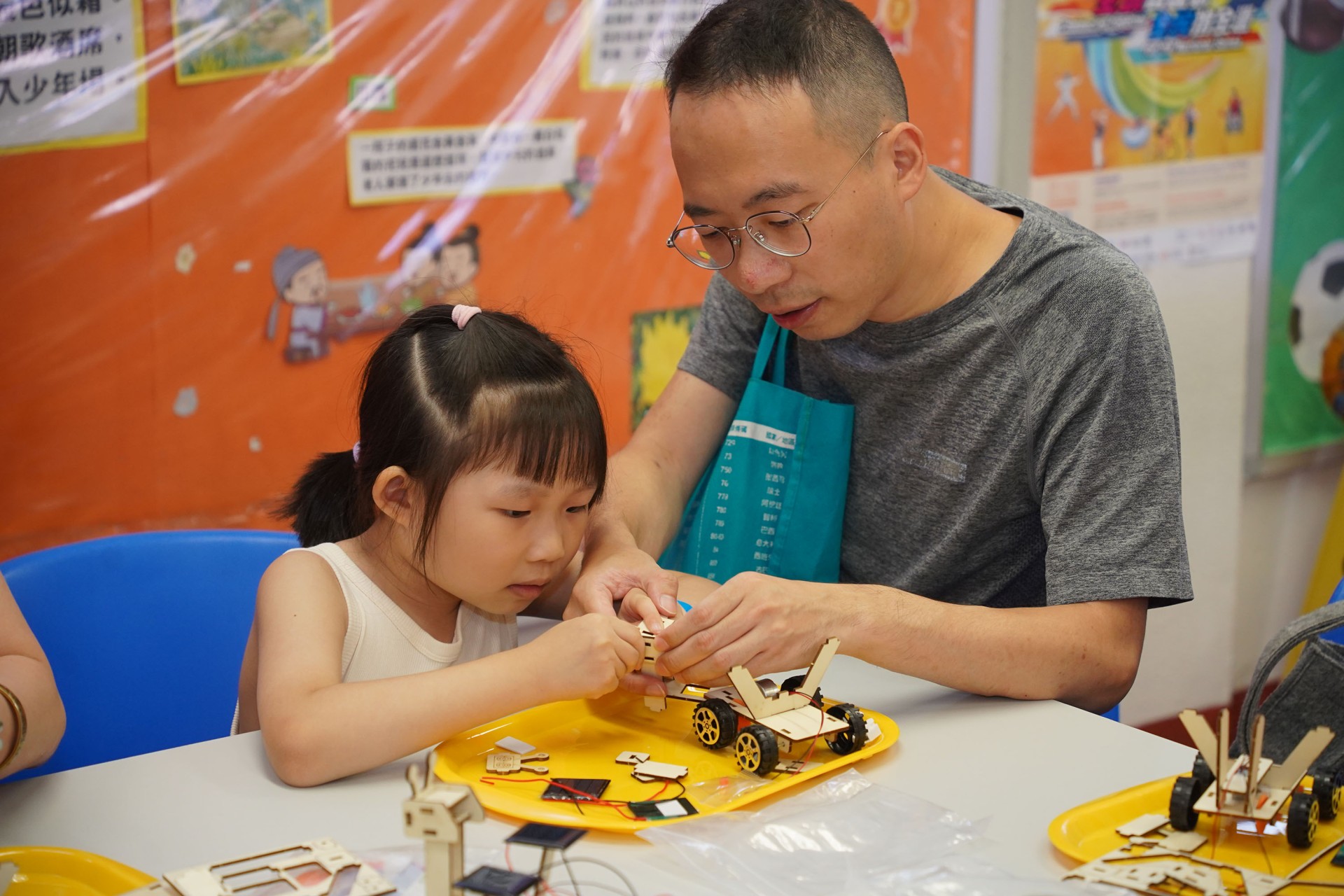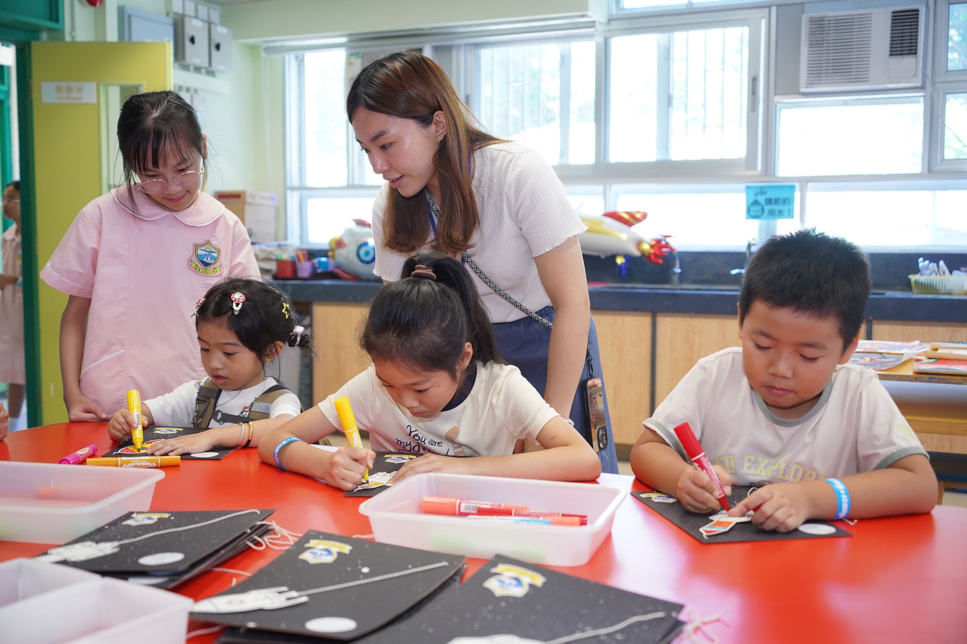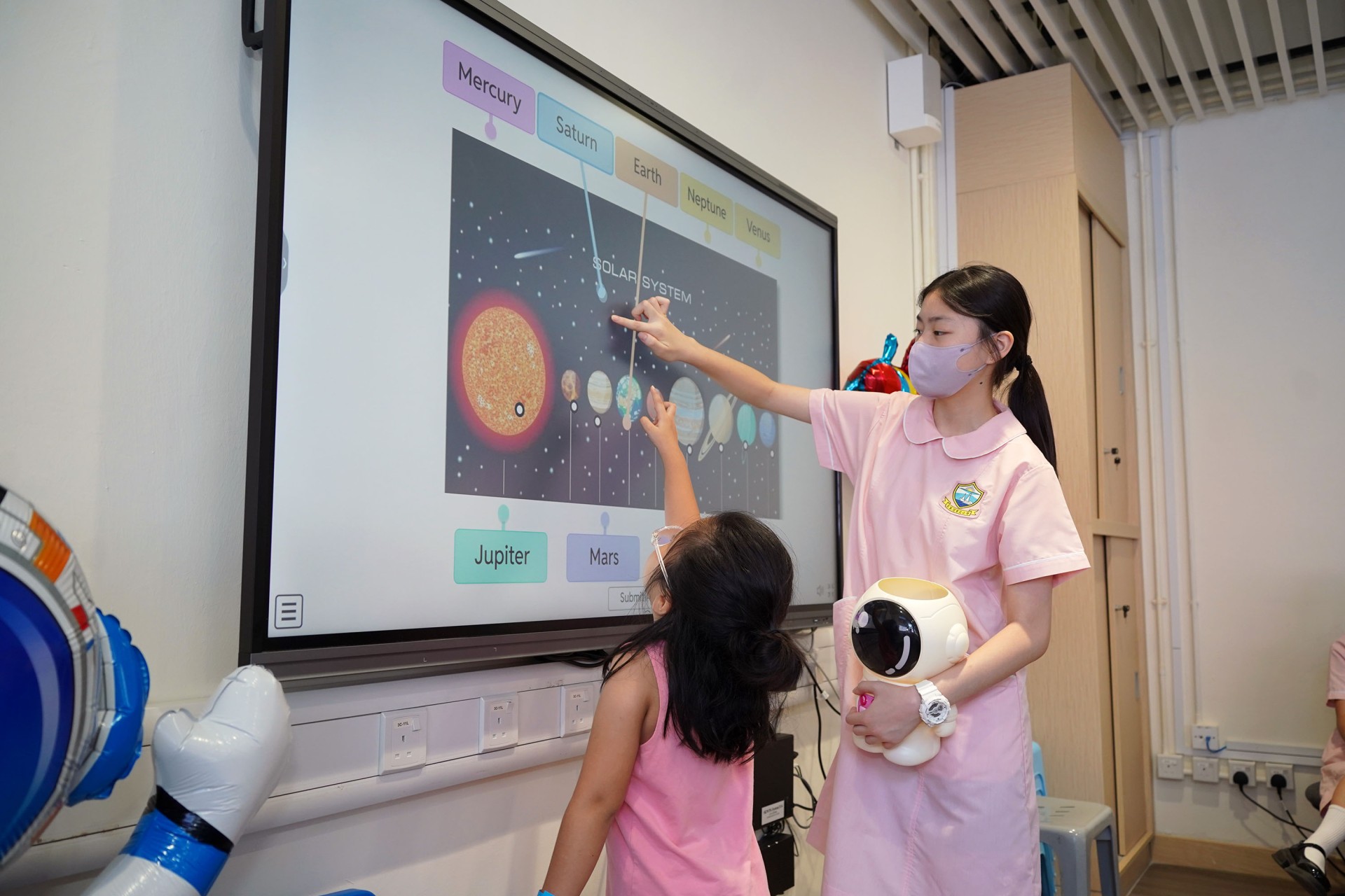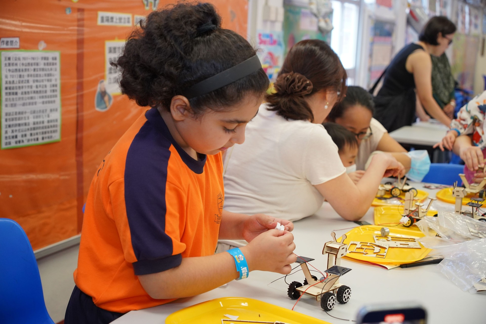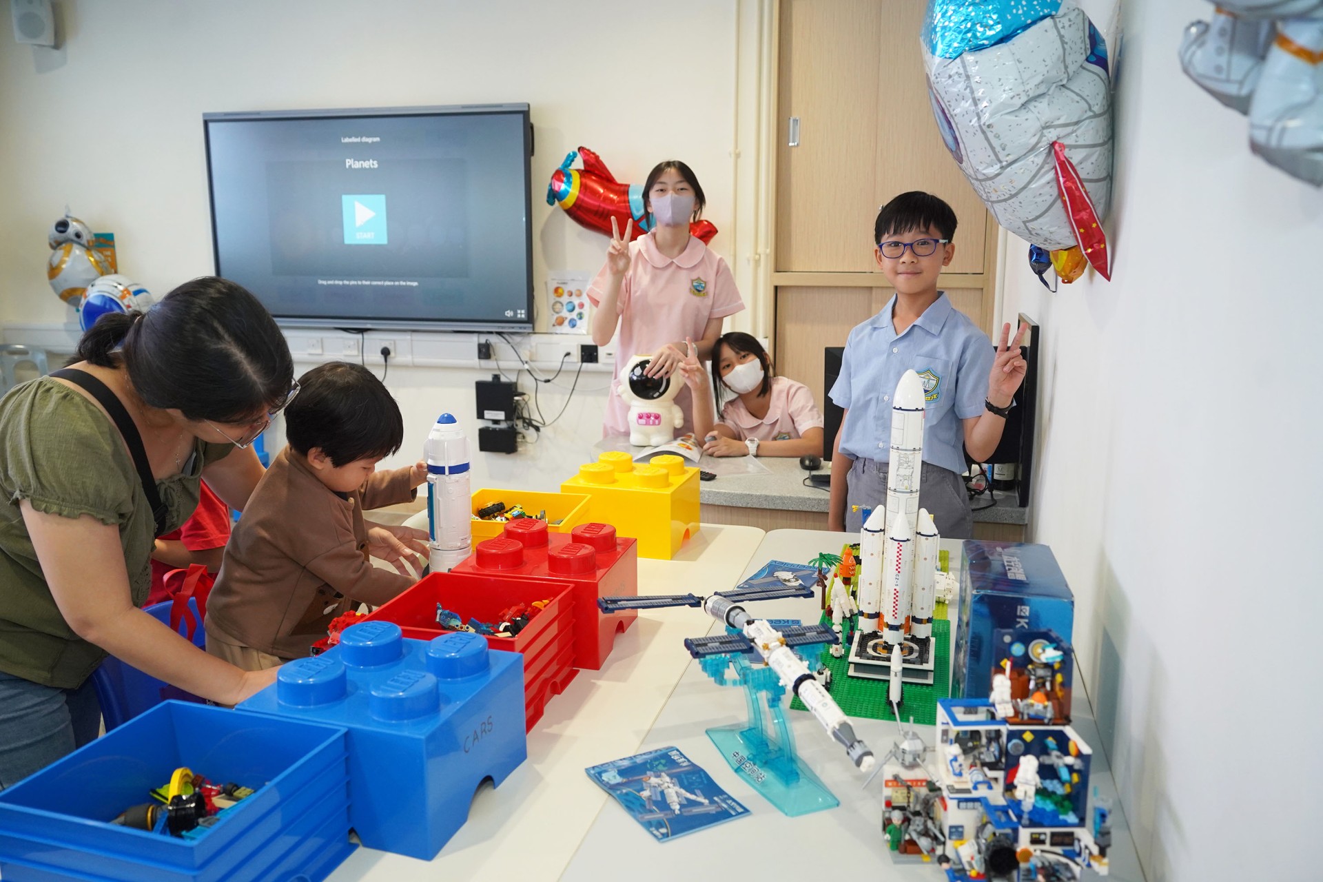 當天的航天體驗活動非常多元化,有動手製作的太陽能人造衞生及太陽能月球車工作坊;天宮空間站、北斗衞星、長征二號及五號火箭等的航天展覽;無人機火箭體驗活動;以天宮空間站實境設計,讓學生可以進行試驗,藉以理解無重狀態的VR太空艙體驗活動、航天服體驗等活動;此外,本校亦安排各科組以相同主題設計活動,例如數學科以不同星球的蘋果重量讓學生誘發學生對引力的興趣;又以太空故事作背景,讓學生以AI生成故事書等;將視藝元素結合STEM元素,製作動感火箭;以mbot讓學生體驗收集太空垃圾等,活動多元而緊扣課程,讓學生的學習變得更生動有趣。