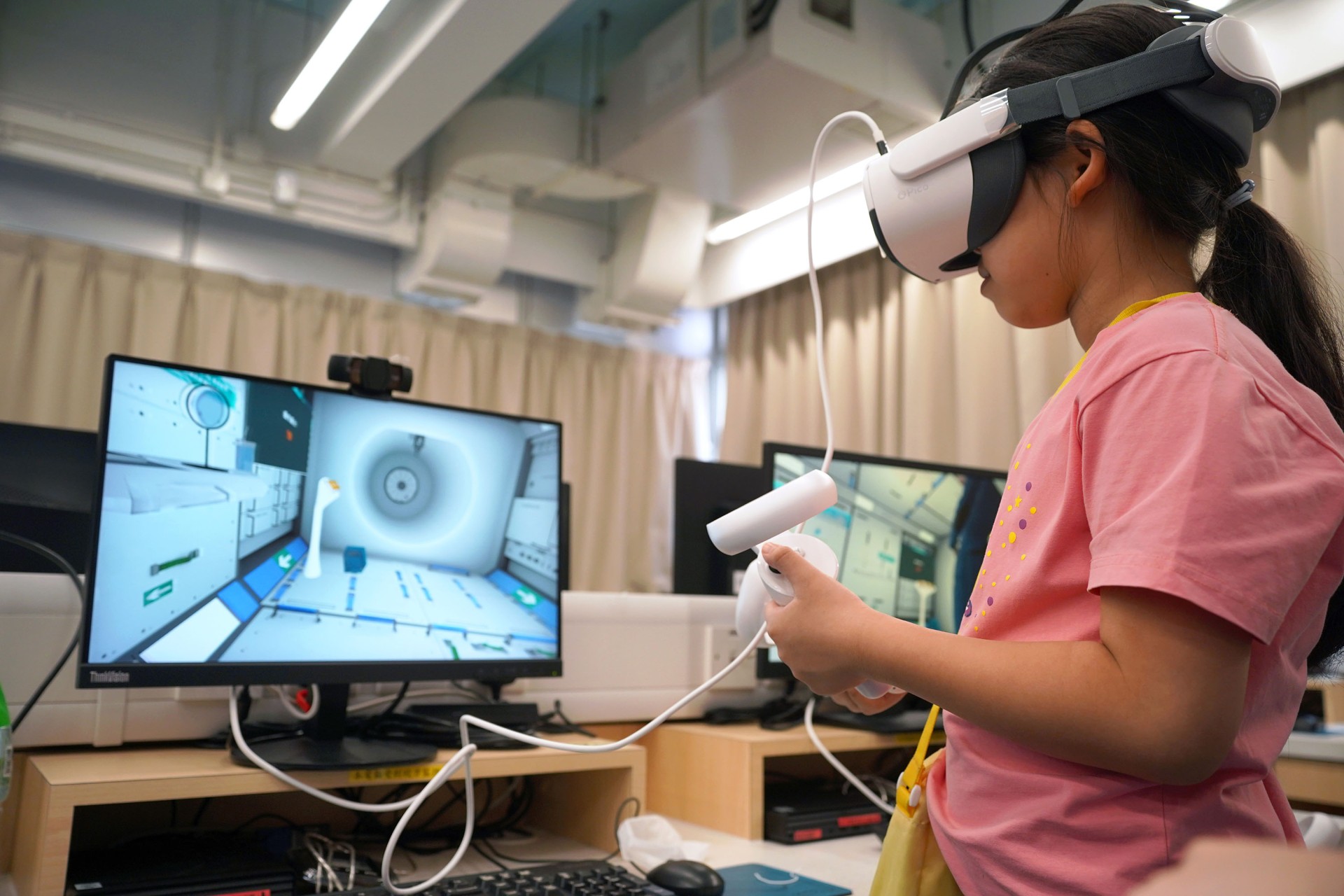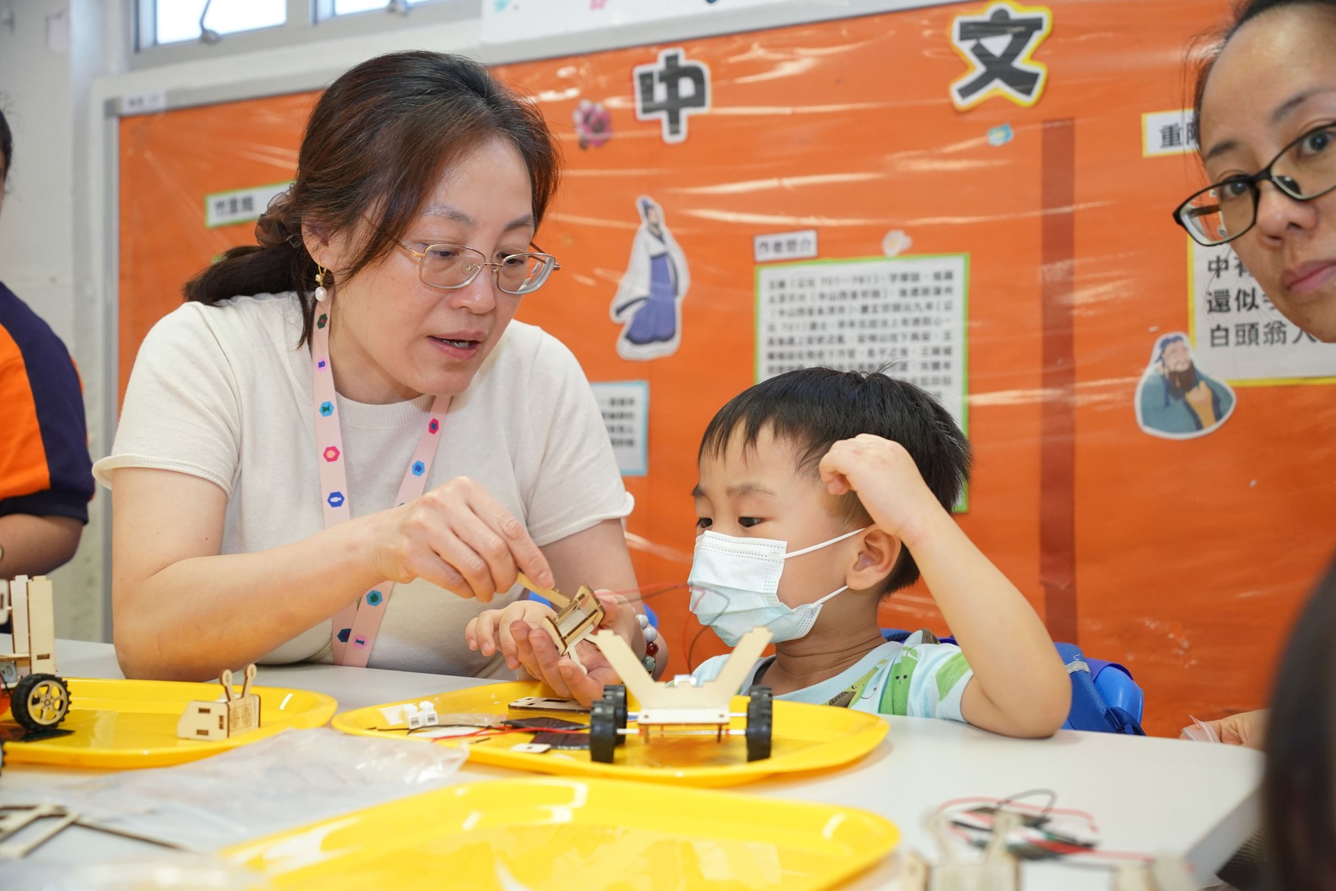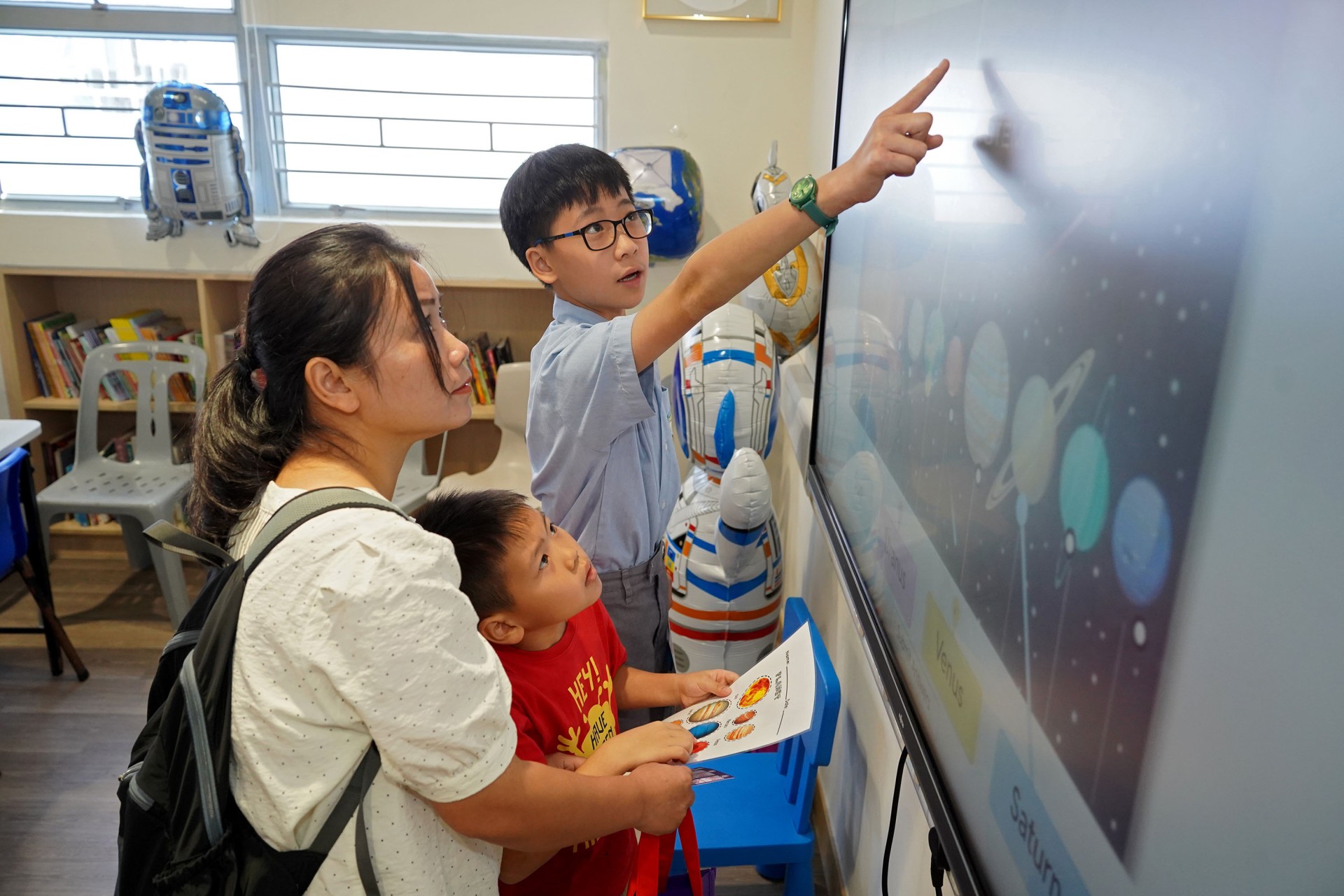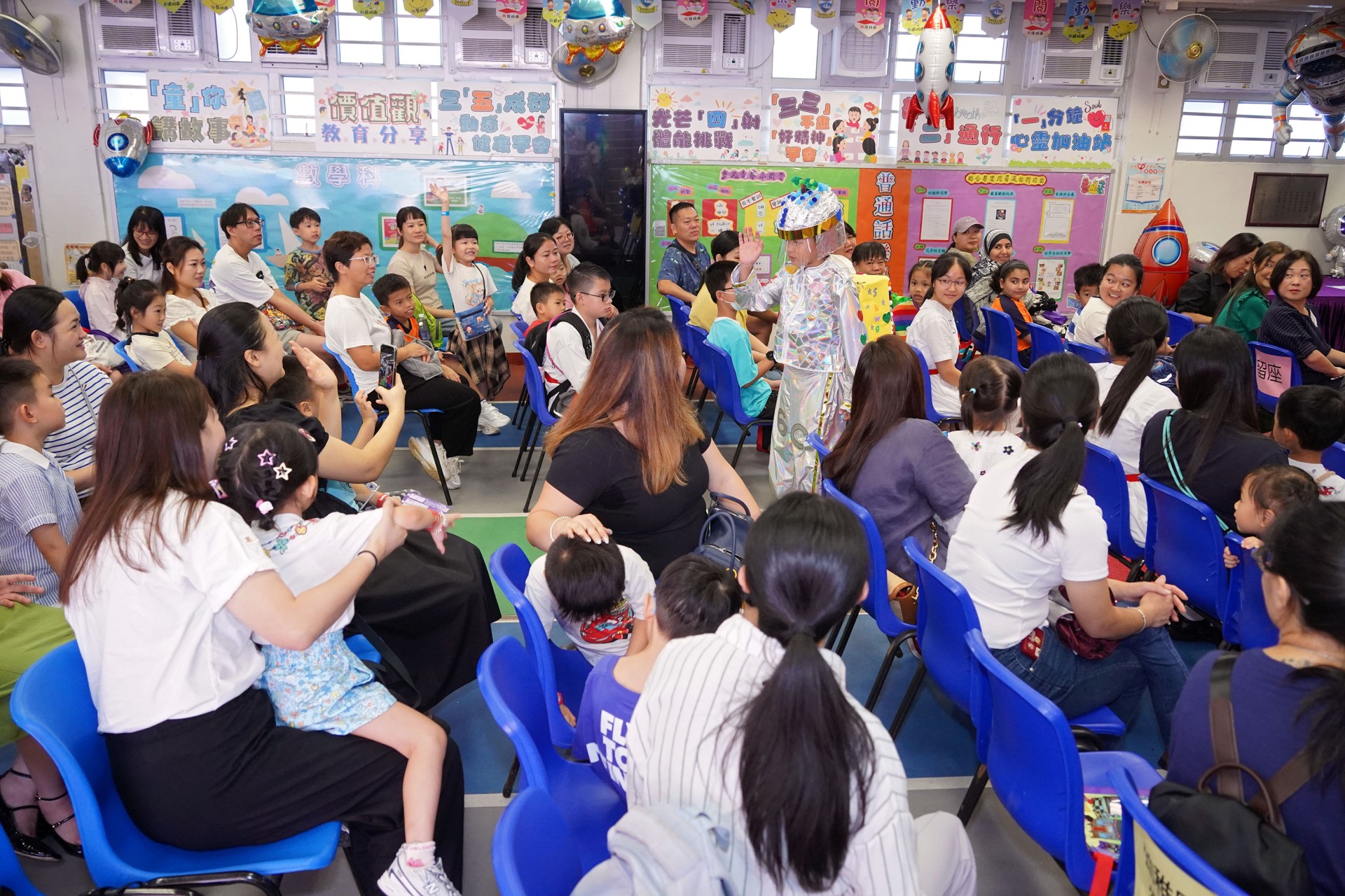 當天的航天體驗活動非常多元化,有動手製作的太陽能人造衞生及太陽能月球車工作坊;天宮空間站、北斗衞星、長征二號及五號火箭等的航天展覽;無人機火箭體驗活動;以天宮空間站實境設計,讓學生可以進行試驗,藉以理解無重狀態的VR太空艙體驗活動、航天服體驗等活動;此外,本校亦安排各科組以相同主題設計活動,例如數學科以不同星球的蘋果重量讓學生誘發學生對引力的興趣;又以太空故事作背景,讓學生以AI生成故事書等;將視藝元素結合STEM元素,製作動感火箭;以mbot讓學生體驗收集太空垃圾等,活動多元而緊扣課程,讓學生的學習變得更生動有趣。