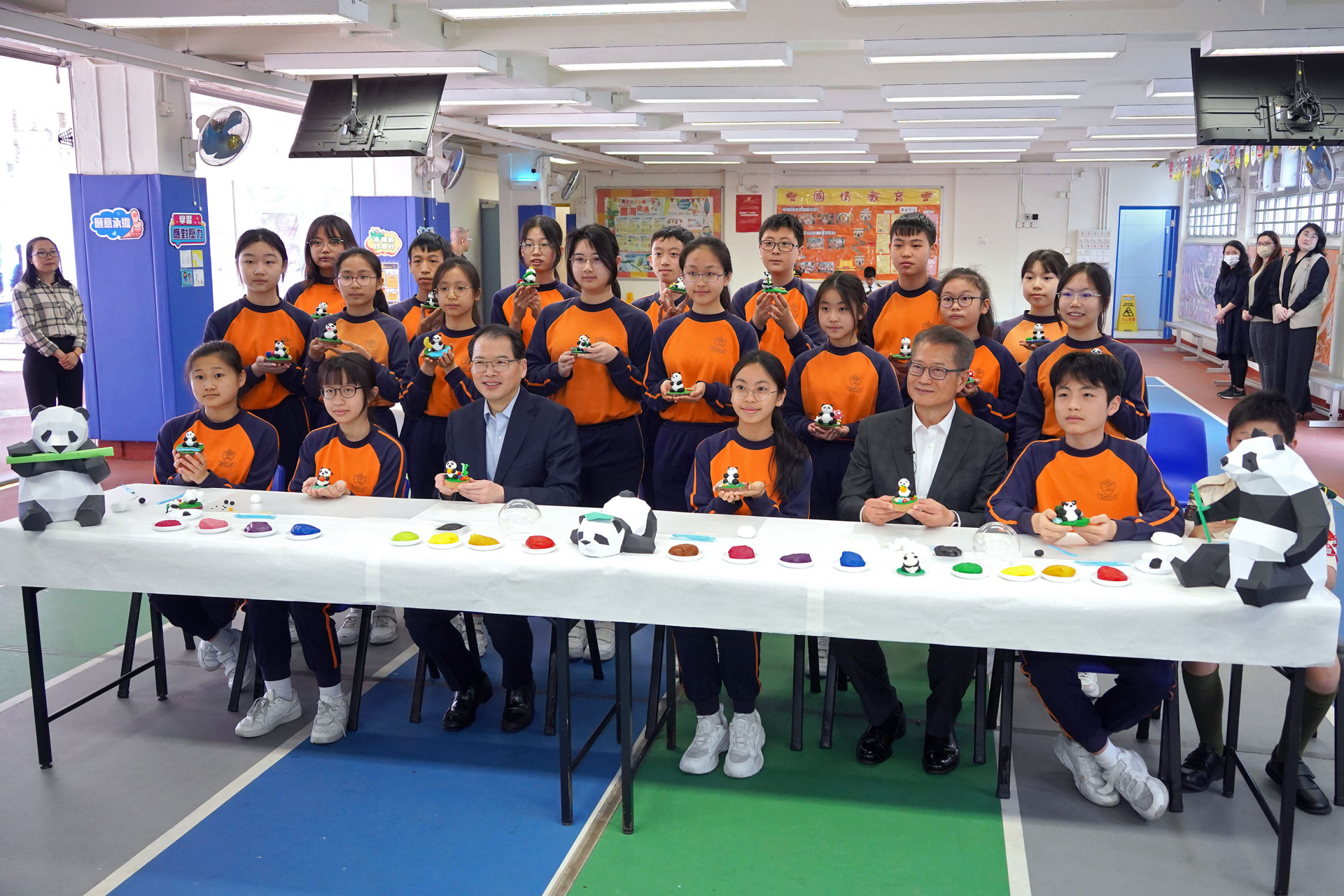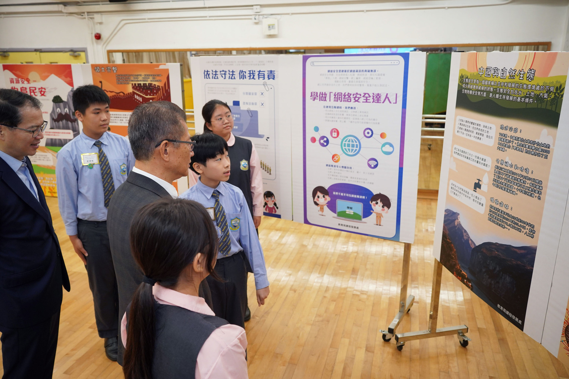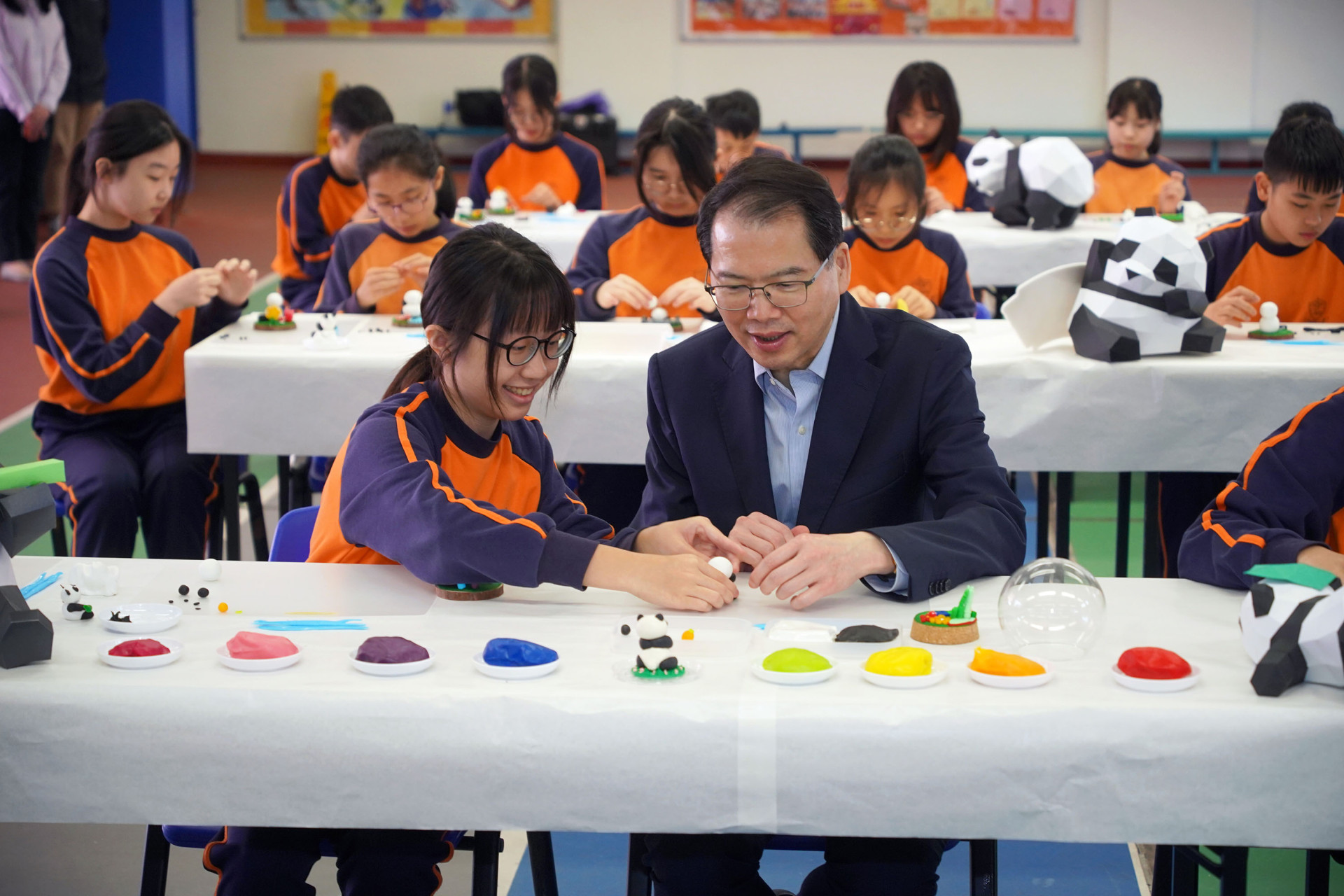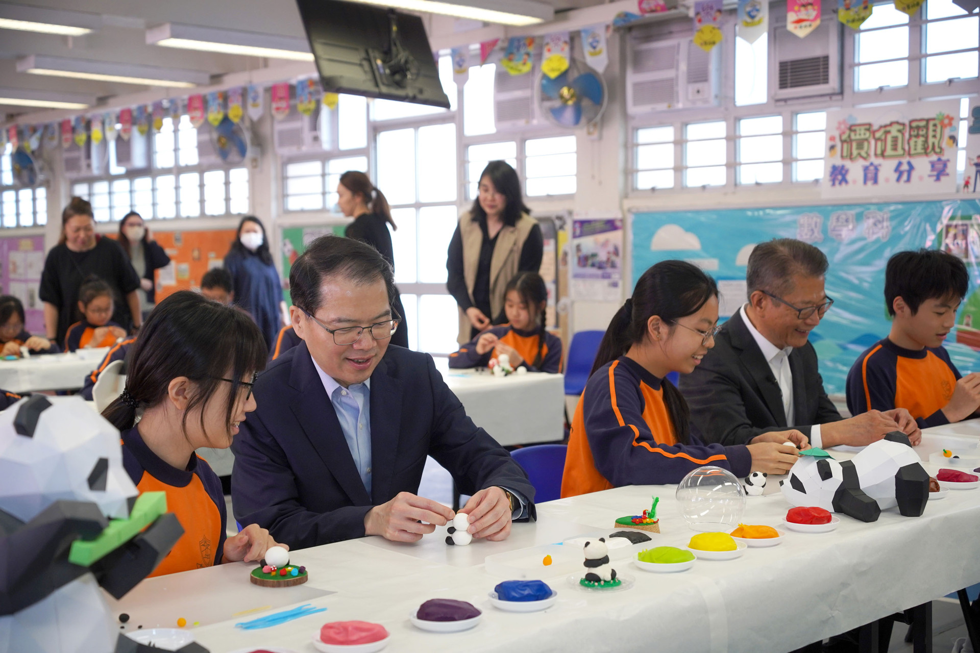 本年度,財政司司長 陳茂波先生, 大紫荊勳賢, GBS, MH, JP及國安委秘書長 區志光先生, PDSM, PMSM更於2025年4月9日上午蒞臨本校了解學校於國安教育方面的發展情況及參與「全民國家安全教育日」活動。陳司長及區秘書長更與本校學生一同參與「齊來認識國家安全」攤位活動,並在本校老師及家長義工指導下與學生一起製作「麵粉熊貓公仔」。