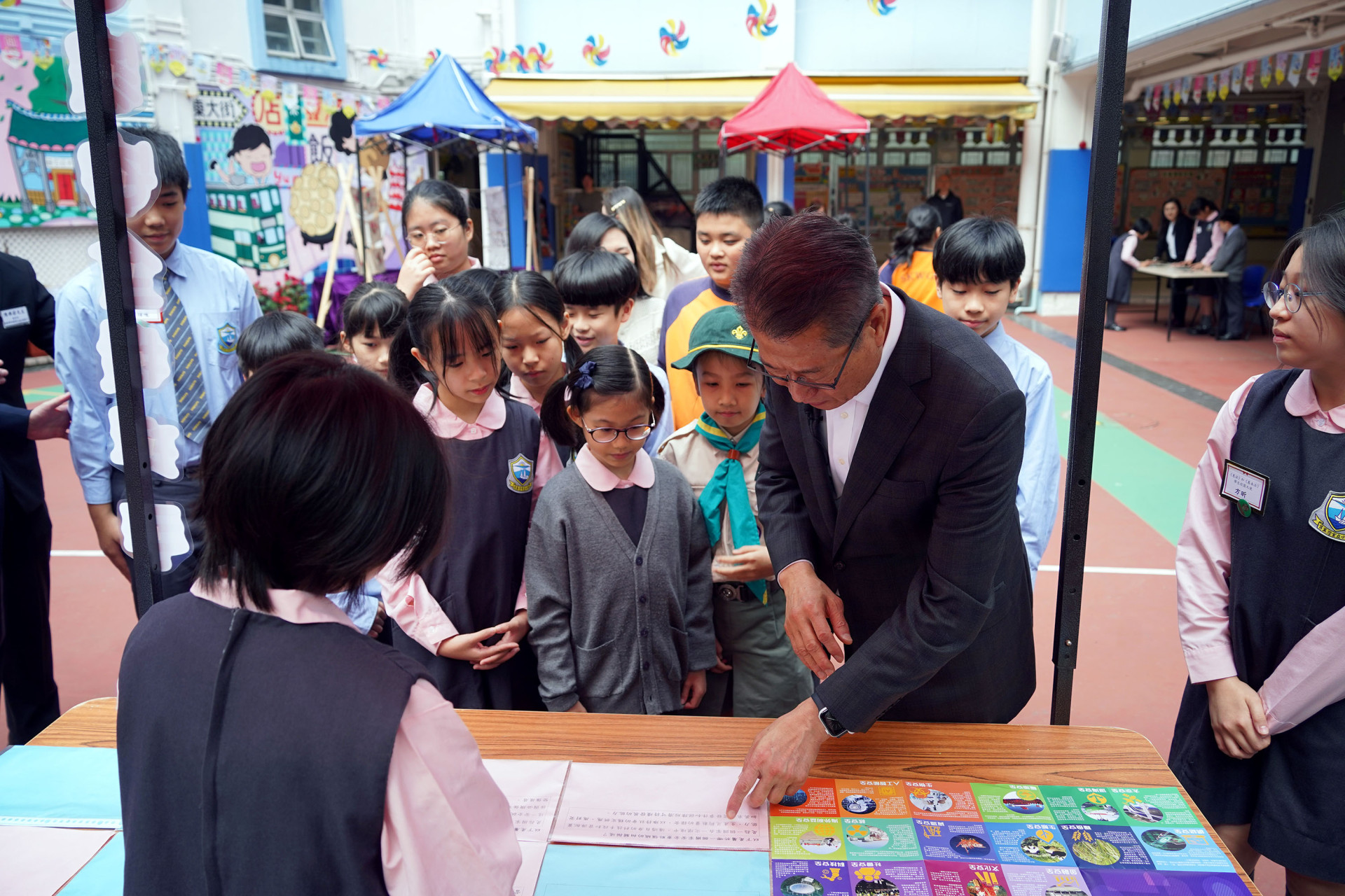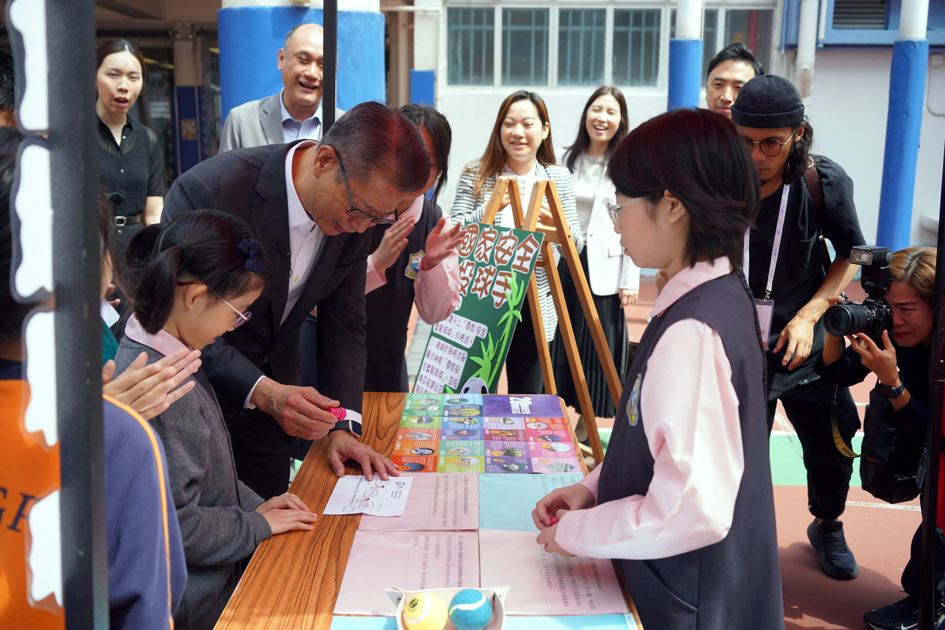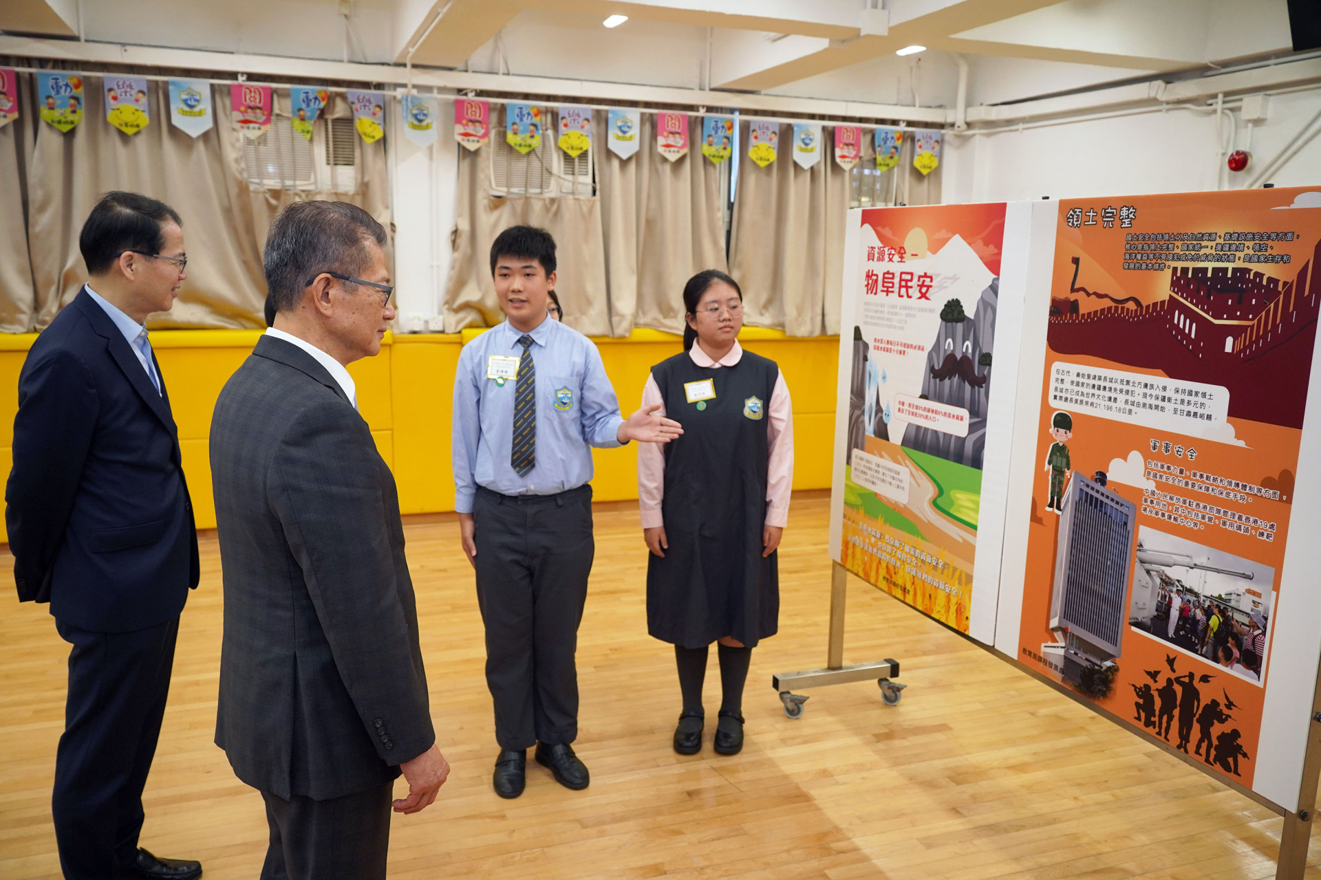本年度,財政司司長 陳茂波先生, 大紫荊勳賢, GBS, MH, JP及國安委秘書長 區志光先生, PDSM, PMSM更於2025年4月9日上午蒞臨本校了解學校於國安教育方面的發展情況及參與「全民國家安全教育日」活動。陳司長及區秘書長更與本校學生一同參與「齊來認識國家安全」攤位活動,並在本校老師及家長義工指導下與學生一起製作「麵粉熊貓公仔」。
