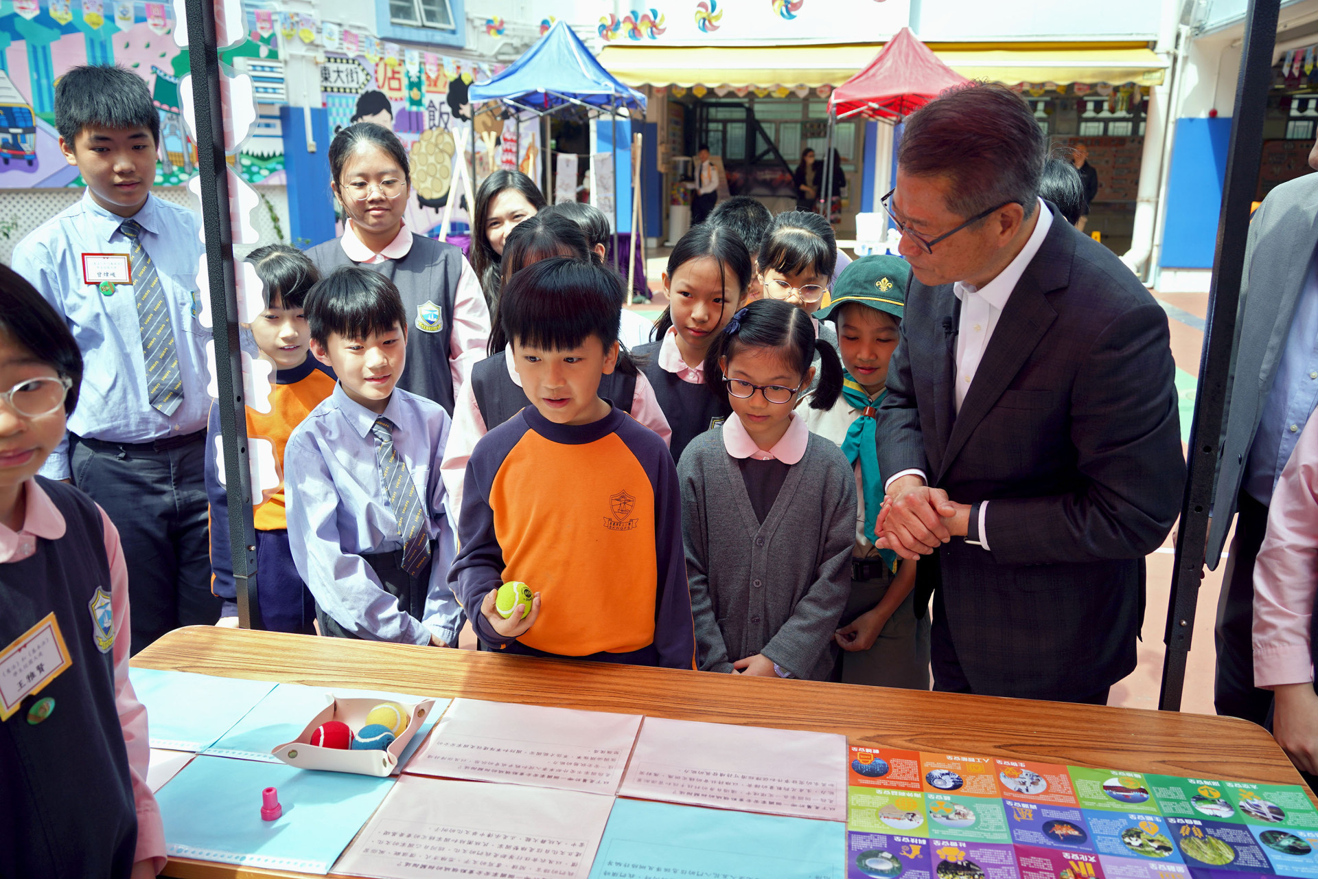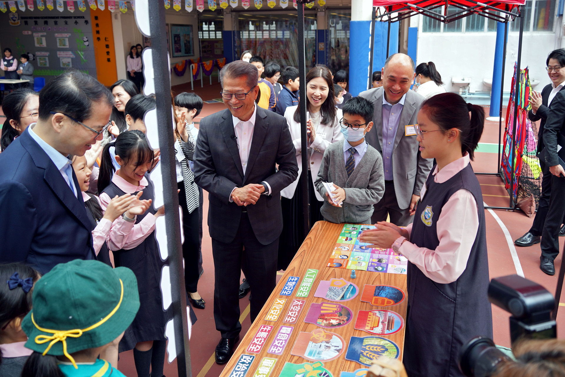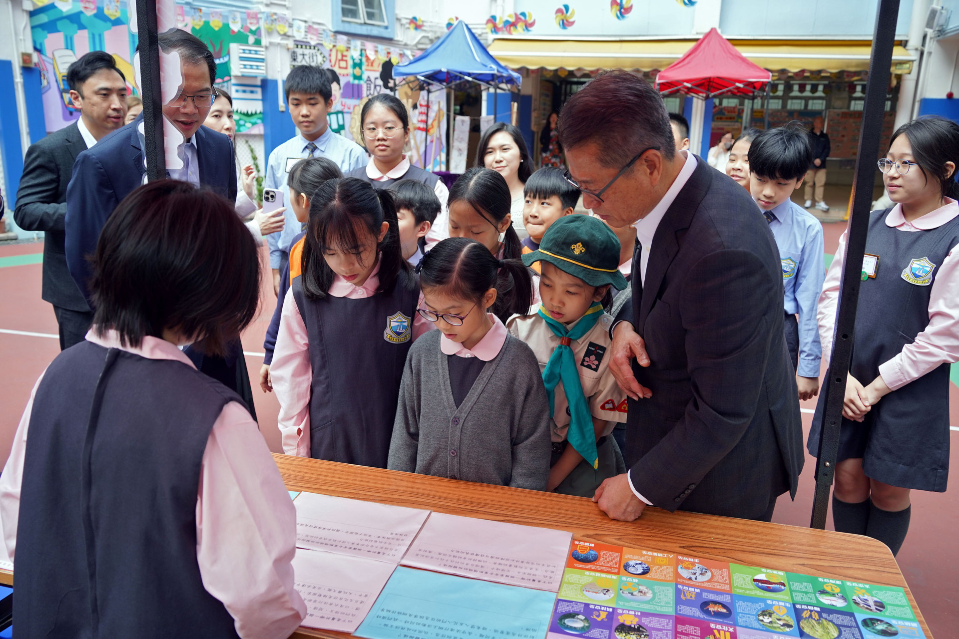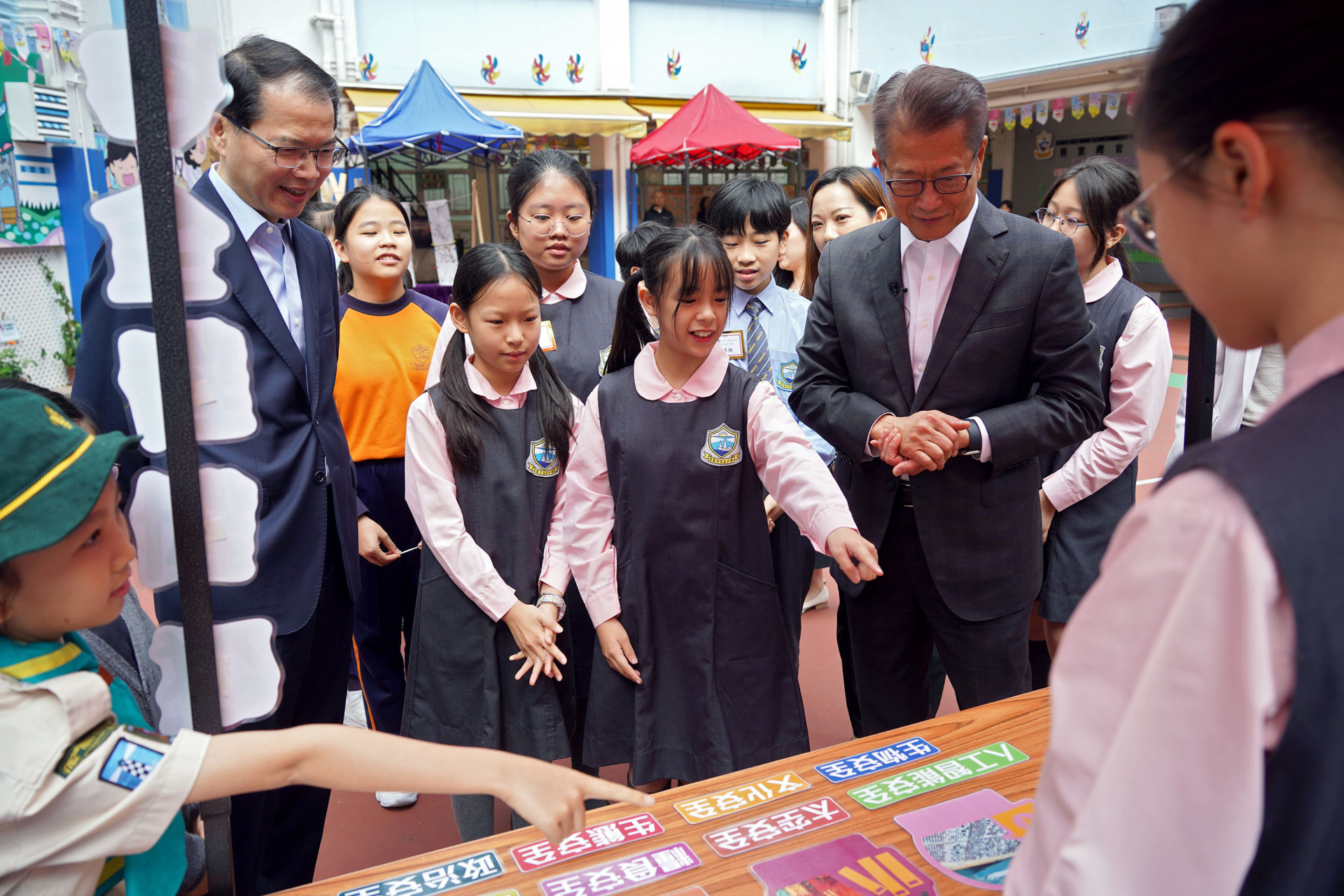 本年度,財政司司長 陳茂波先生, 大紫荊勳賢, GBS, MH, JP及國安委秘書長 區志光先生, PDSM, PMSM更於2025年4月9日上午蒞臨本校了解學校於國安教育方面的發展情況及參與「全民國家安全教育日」活動。陳司長及區秘書長更與本校學生一同參與「齊來認識國家安全」攤位活動,並在本校老師及家長義工指導下與學生一起製作「麵粉熊貓公仔」。